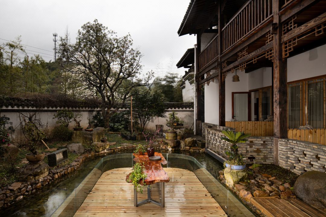 ①自然融合:山庄坐落在群山环抱、风景如画的安吉县山川乡马家弄村,其园林设计可能注重与周围自然环境的融合,充分利用山水景观,营造出与自然和谐共生的氛围。
