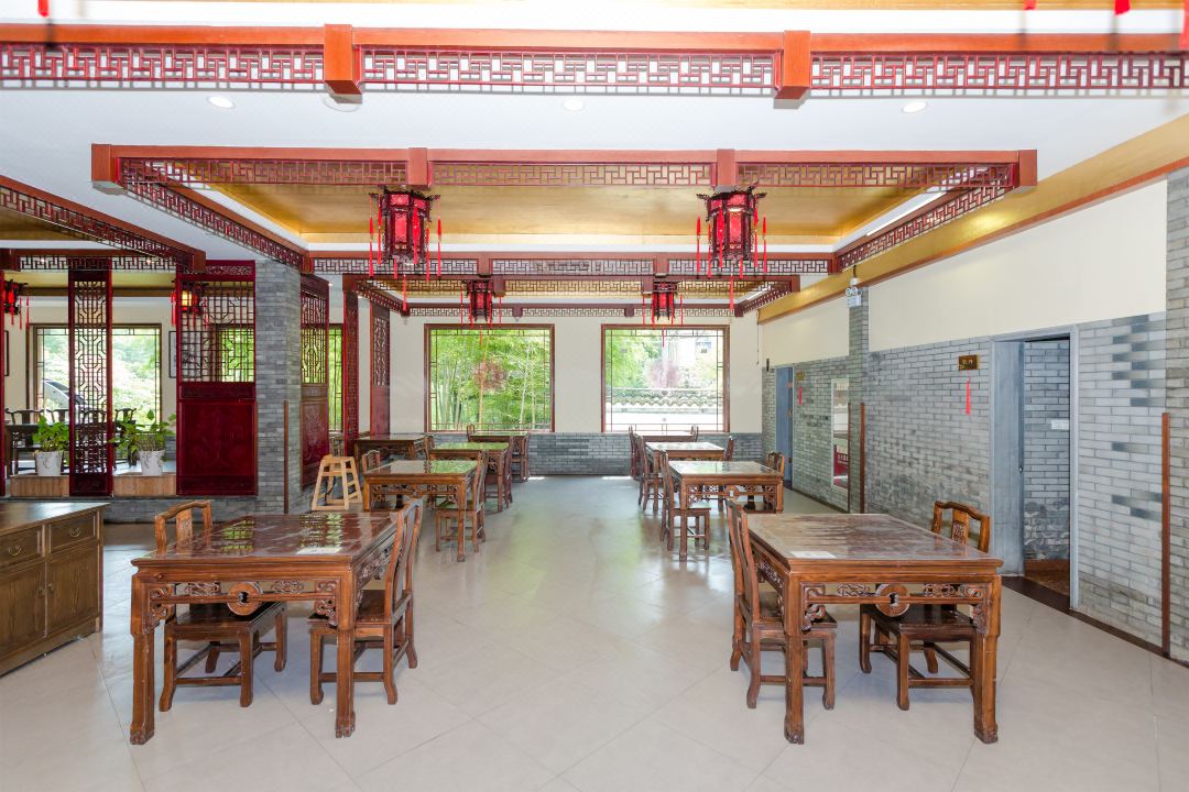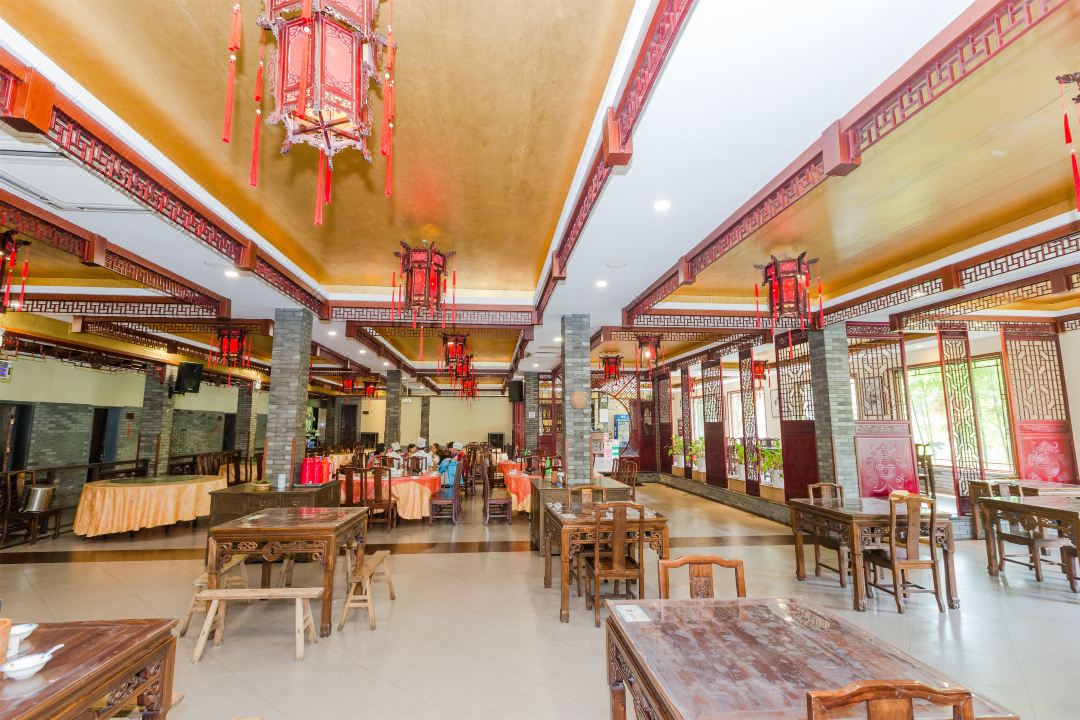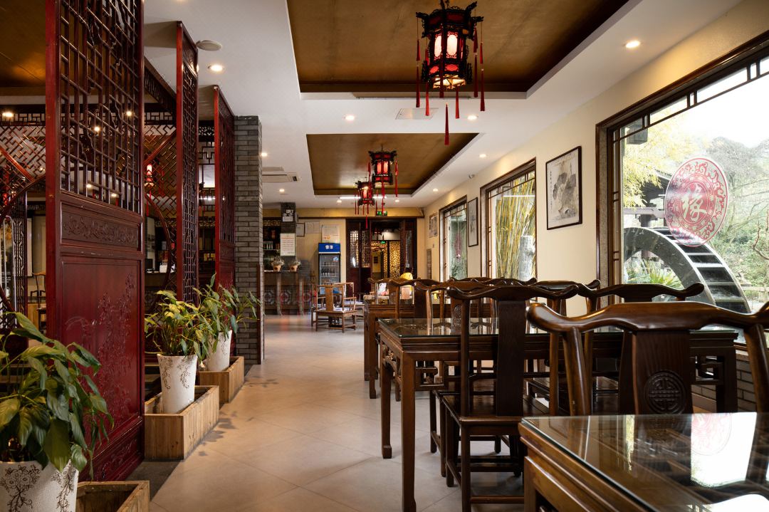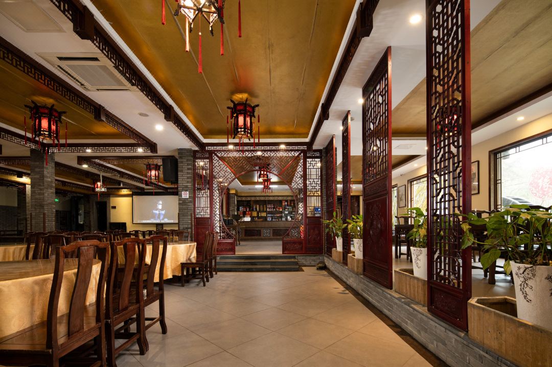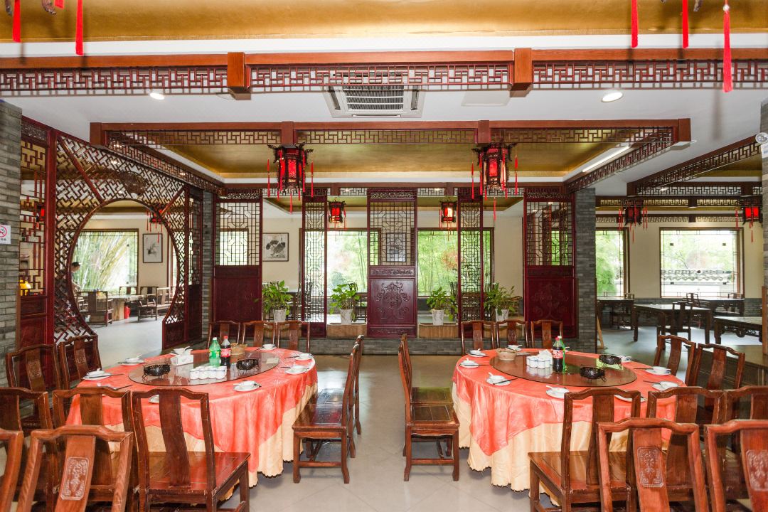 ②空间布局:拥有多个餐饮区域,包括优雅别致的中式大厅和文化意境各异的餐饮包厢。大厅可同时容纳 100 多人就餐,适合团队聚餐、大型宴会等;包厢则有 8-9 间,为客人提供了相对私密的就餐空间,适合家庭聚会、商务宴请等