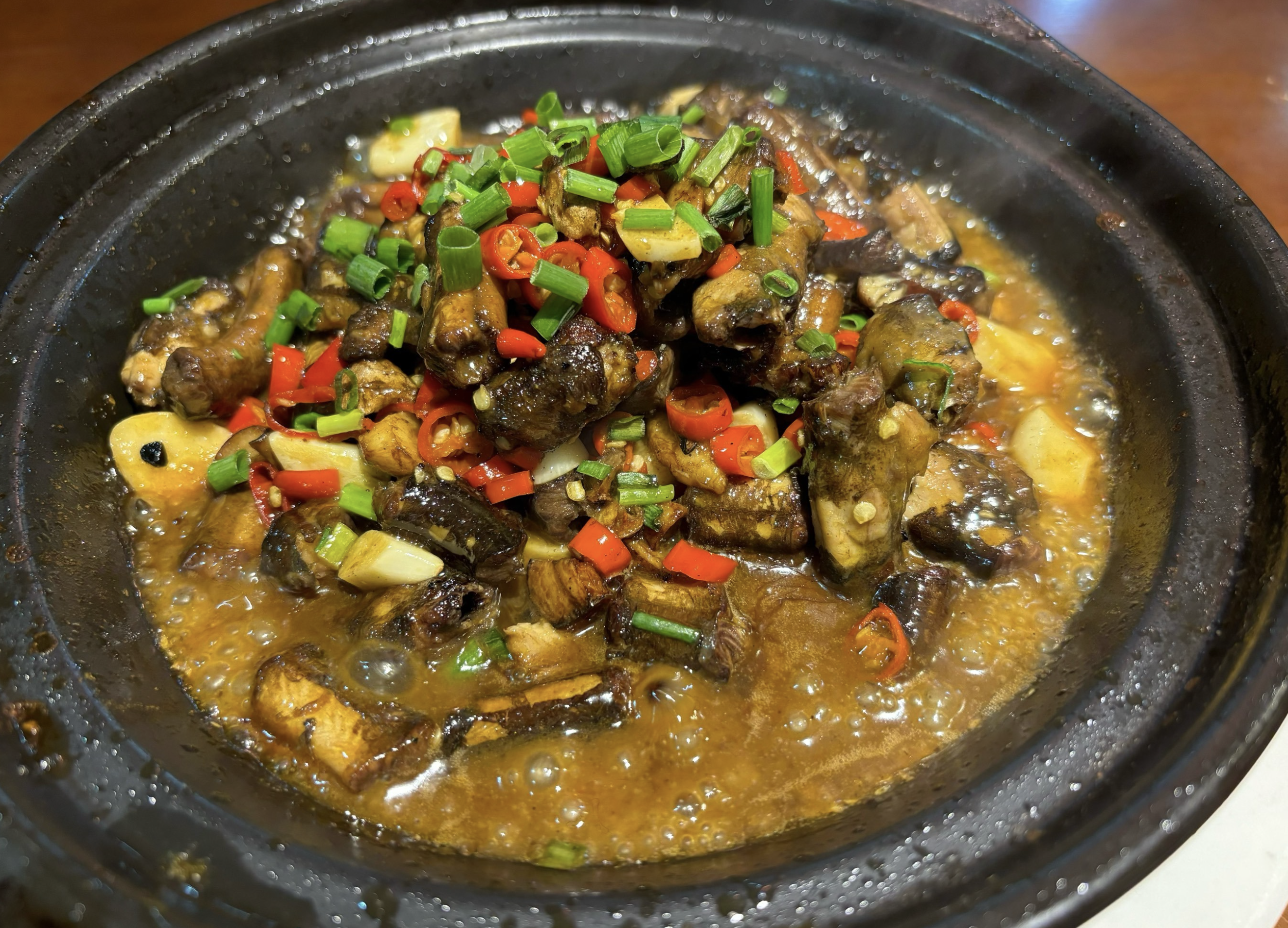 ①整体风格:山庄整体采用徽派建筑风格,江南式园林布局,与餐饮环境相融合,营造出独特的氛围。亭榭廊槛宛转其间、小桥流水格调雅致,客人在就餐过程中仿佛置身于江南园林之中,享受着美景与美食的双重体验。